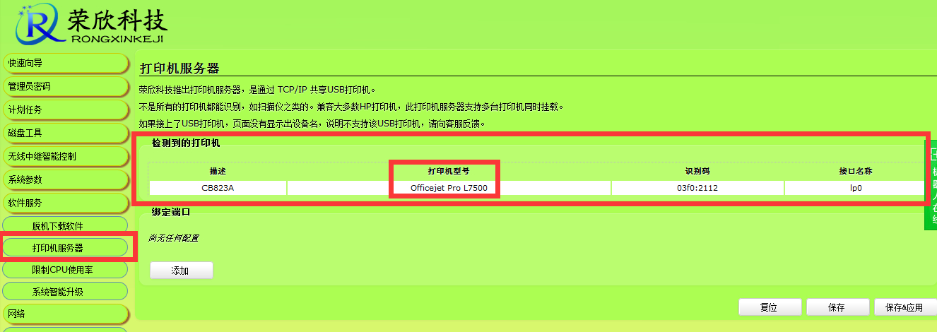 荣欣路由打印机服务器